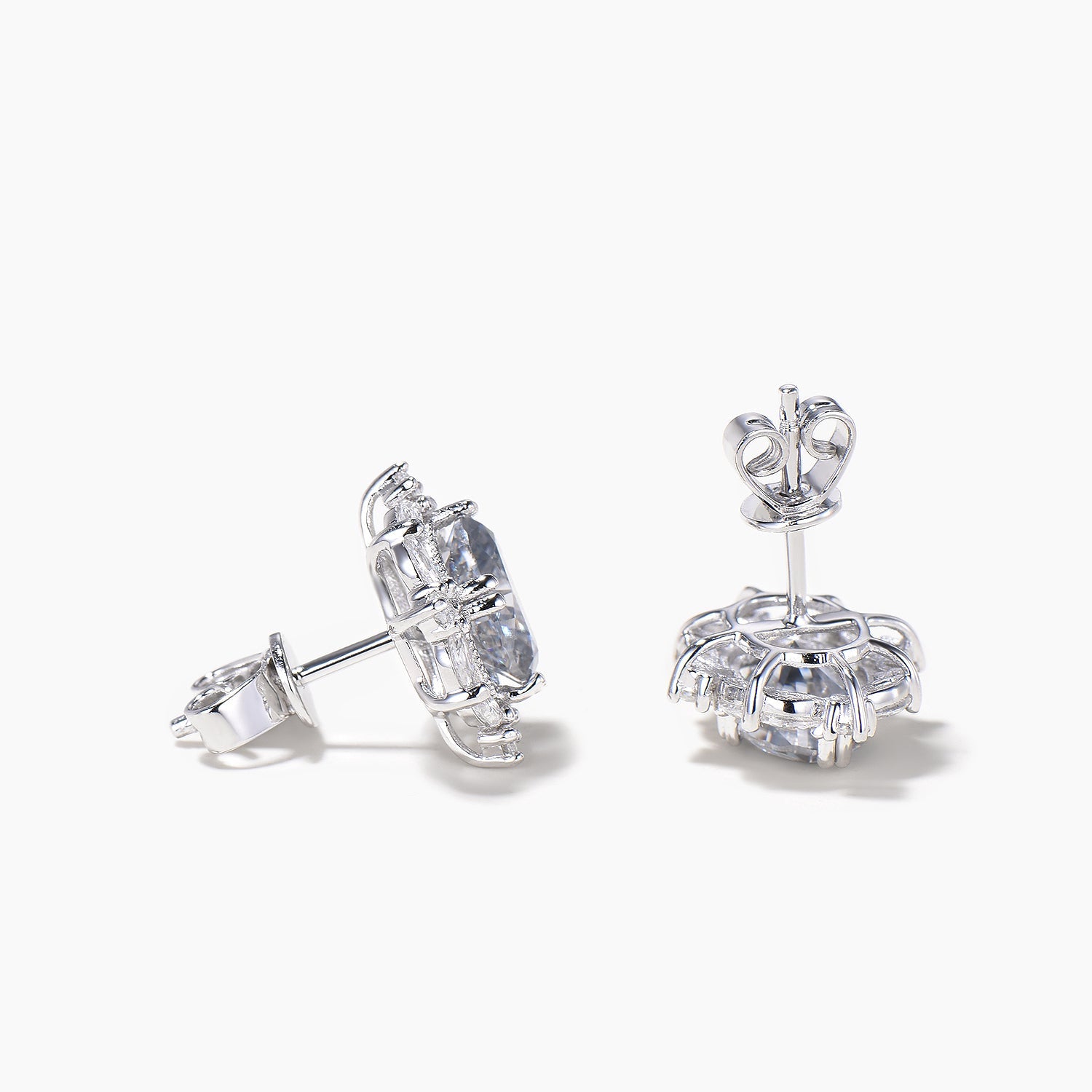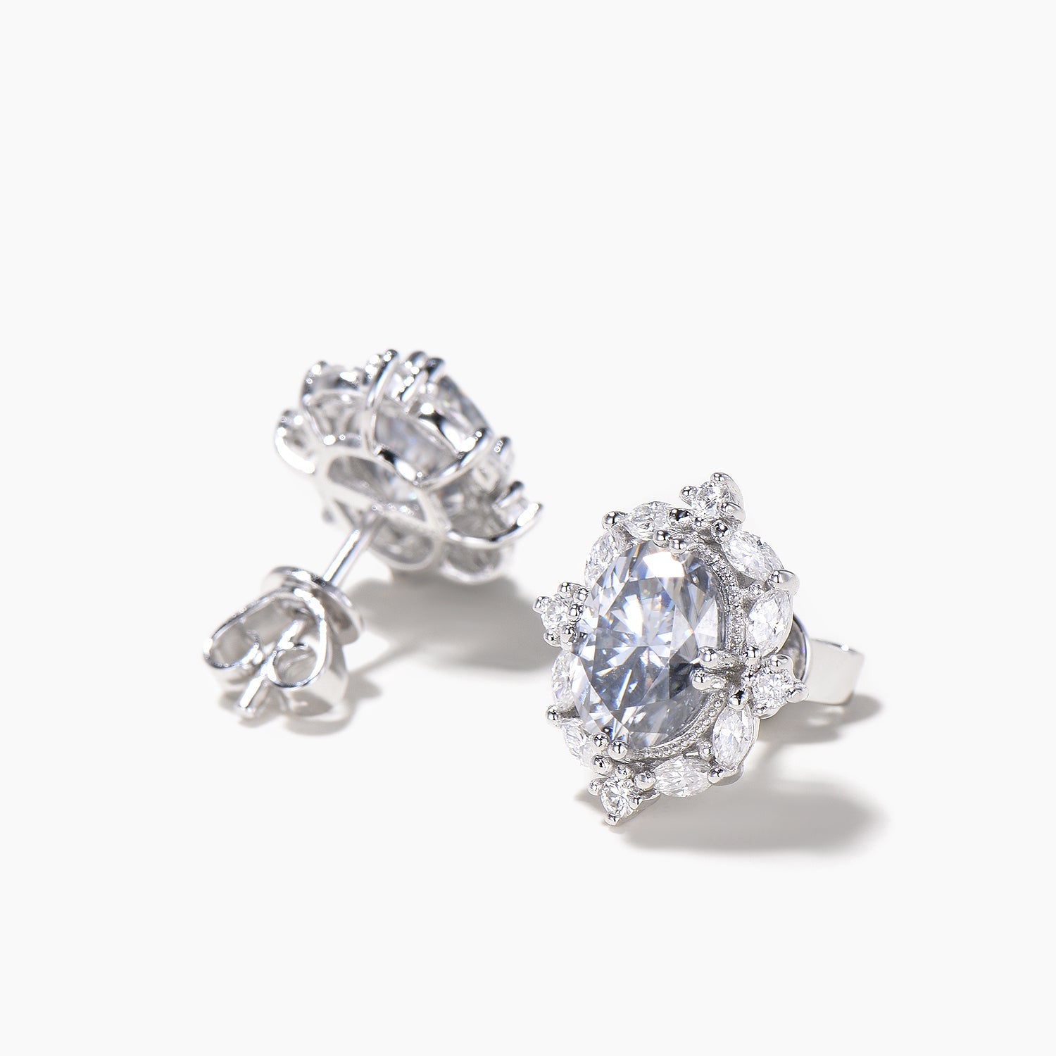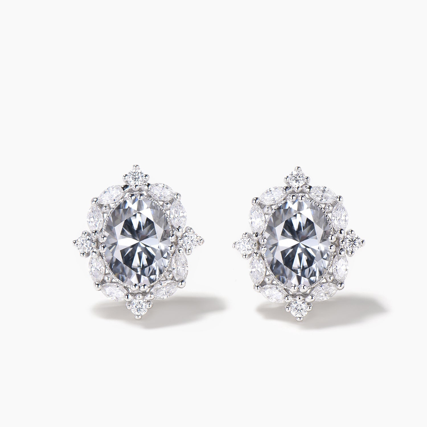 Oval Cut Moissanite Stud Earrings Marquise Moissanite Halo White Gold Earrings
