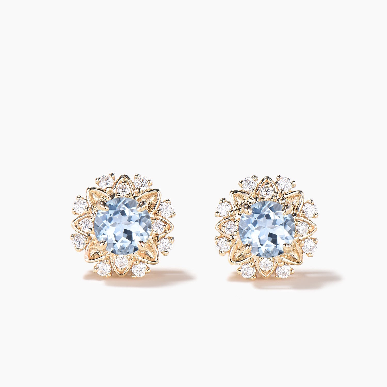 Round Cut Aquamarine Stud Earrings Diamond Cluster Flower Earrings
