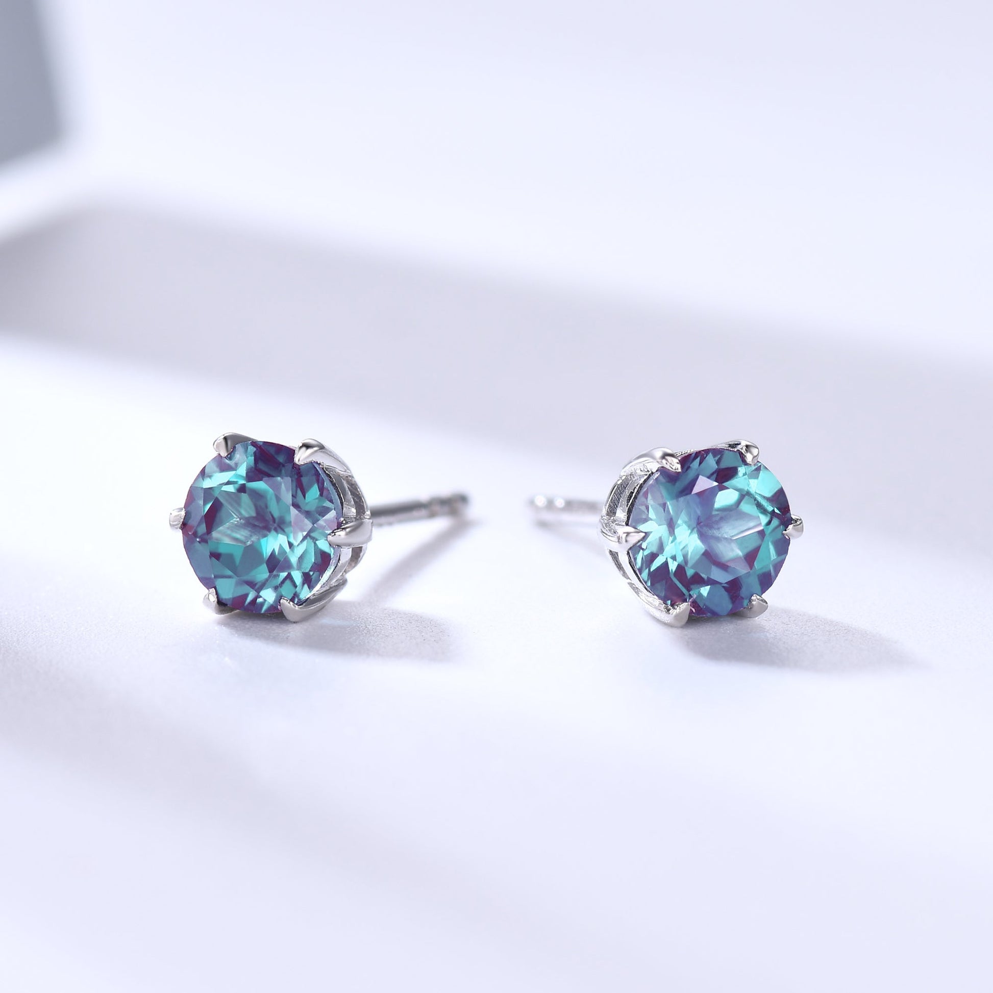 1ct Solitaire Round Cut Color-Change Alexandrite Stud Earrings Minimalist Earrings