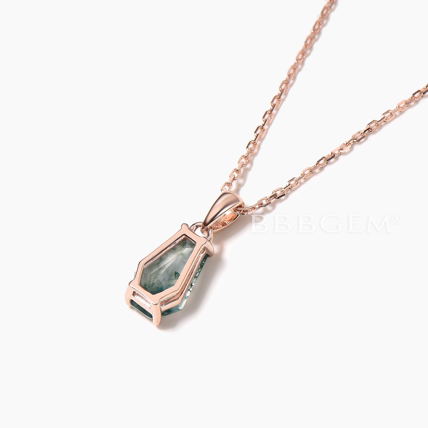1CT Coffin Cut Natural Moss Agate Necklace Rose Gold Solitaire Pendant