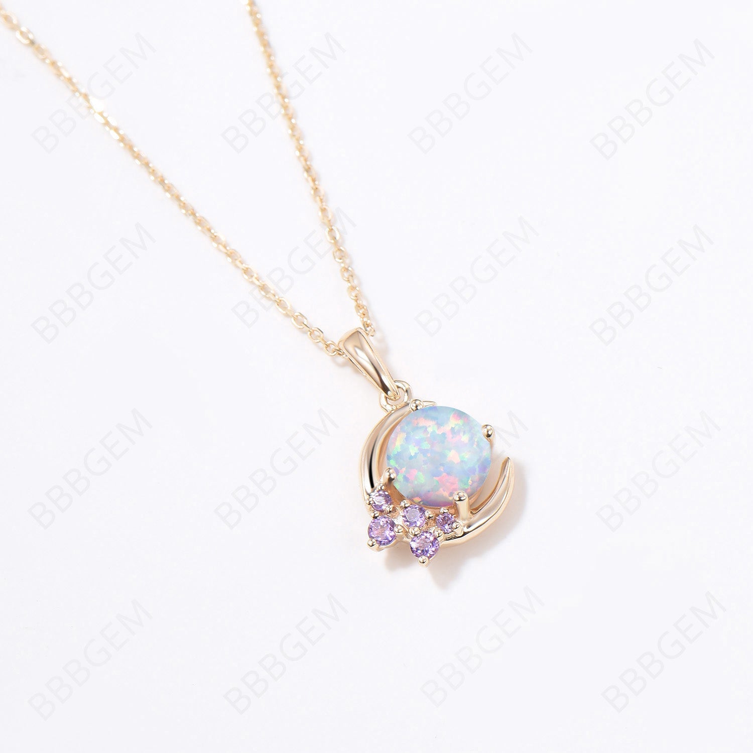 5mm Round White Opal Pendant Necklace Cluster Amethyst Pendant Vintage October Birthstone Wedding Necklace Half Moon Opal Chain Necklace