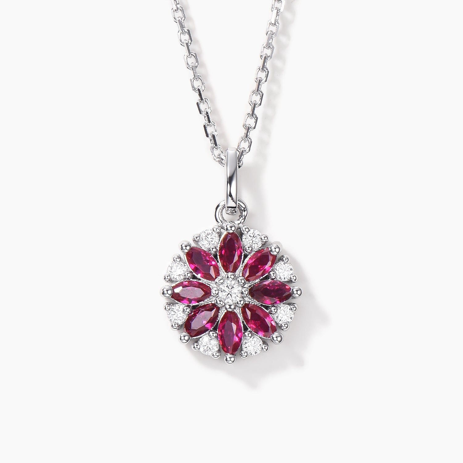 Marquise Cut Ruby Wedding Necklace Diamond Cluster Floral White Gold Pendant