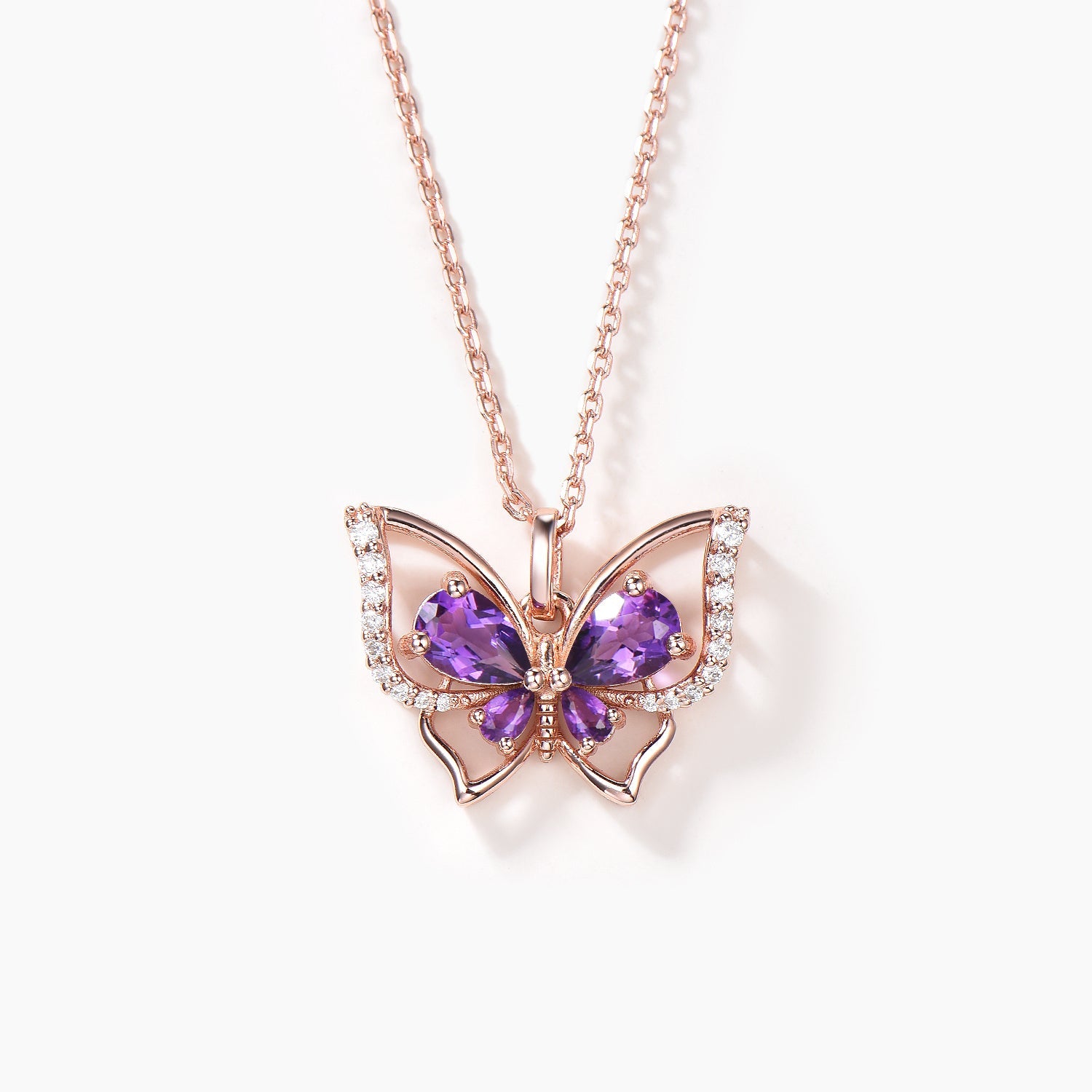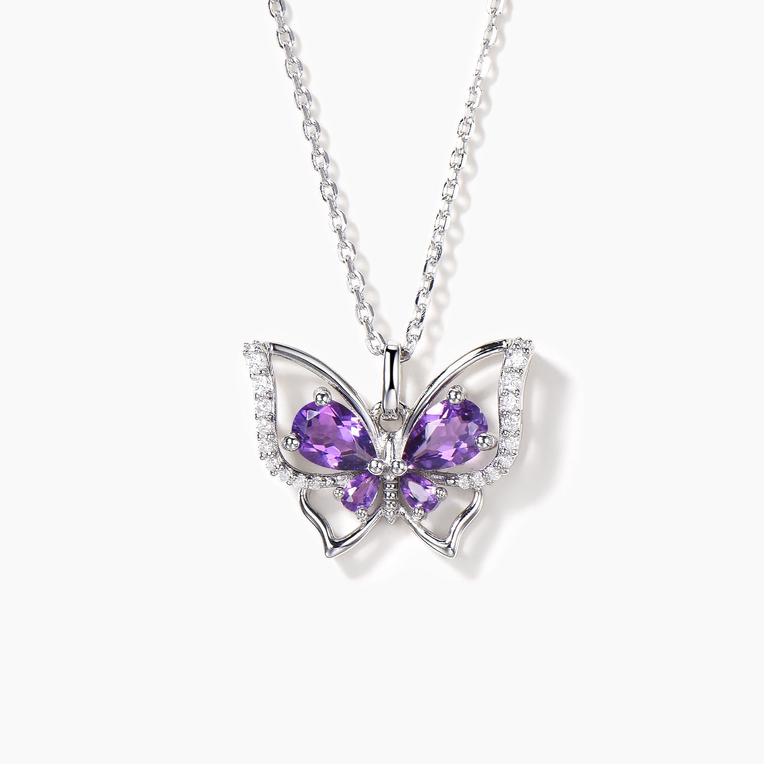 Pear Cut Natural Amethyst Butterfly Pendant Diamond Nature Inspired Necklace