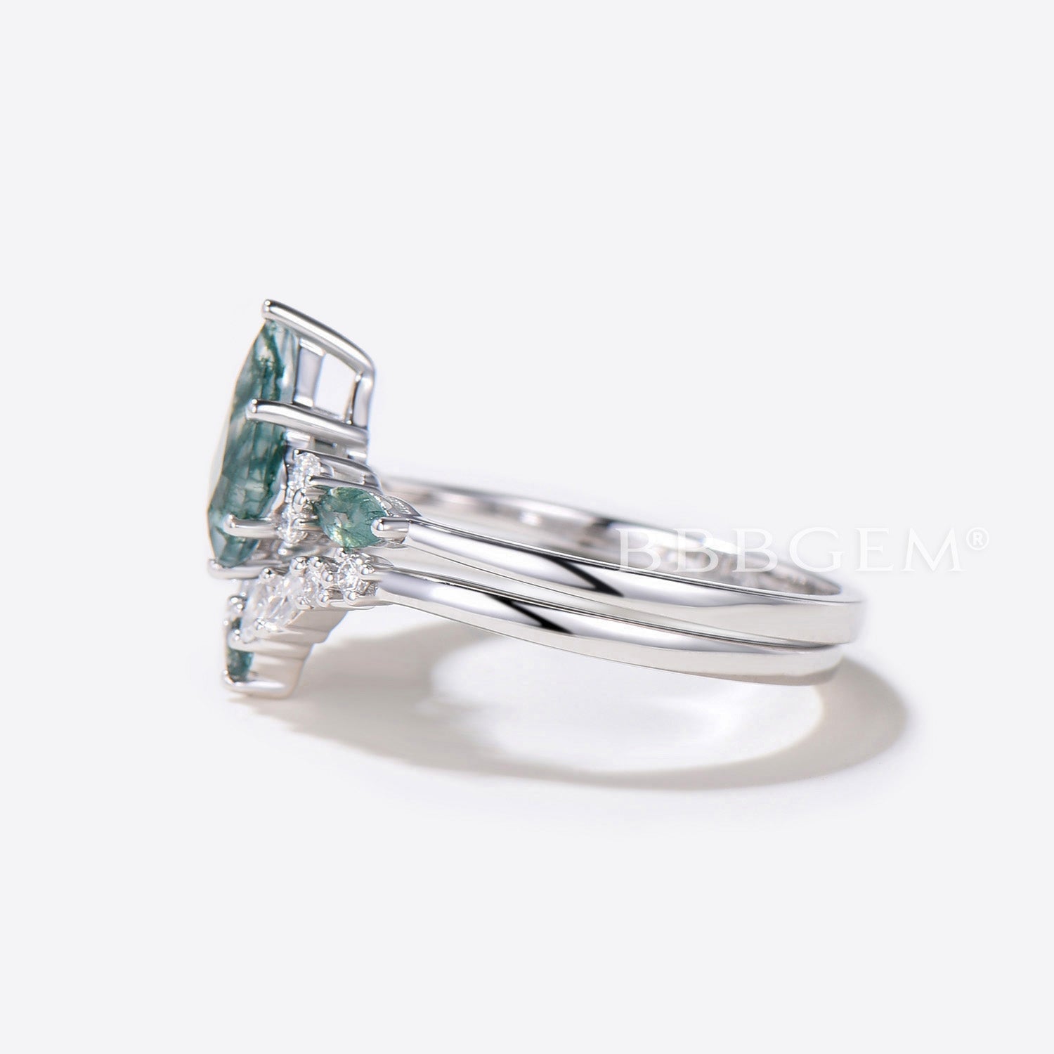 Side stone: Moissanite and Moss Agate
