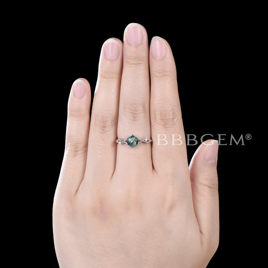 Twig Kite Moss Agate Ring Silver Green Moss Engagement Ring
