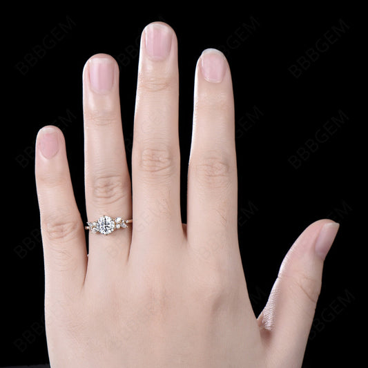 7mm Round Moissanite Ring Yellow Gold Cluster Promise Ring