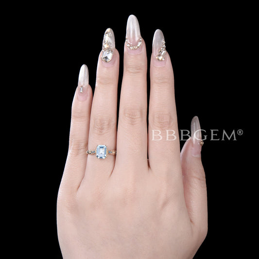 Emerald Cut Aquamarine Engagement Ring 7 Stone Blue Topaz Ring