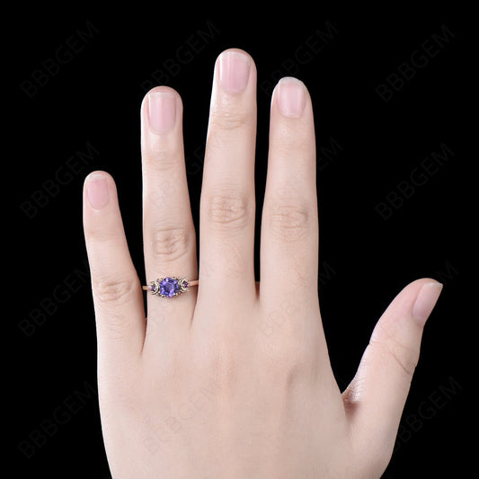 Moon Engagement Ring Round Alexandrite Amethyst Wedding Ring