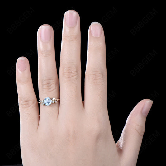 10K/14K Gold Round Natural Aquamarine Cluster Wedding Ring