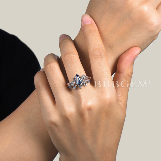 Butterfly Alexandrite Engagement Ring Set Cluster Amethyst Ring