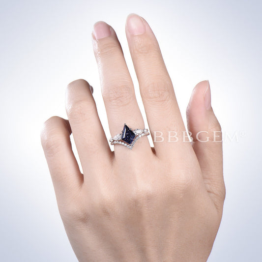 Kite Starry Sky Blue Sandstone Ring 5 Stone Moissanite Bridal Ring Set