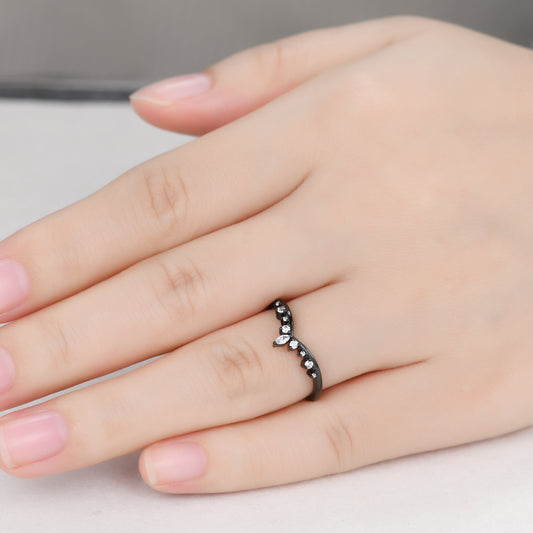 Marquise Diamond Black Gold Wedding Ring V Chevron Band