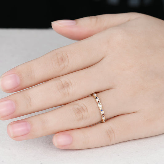 1.5mm Moissanite & Diamond Wedding Ring Unique Matching Wedding Bands Custom Family Ring