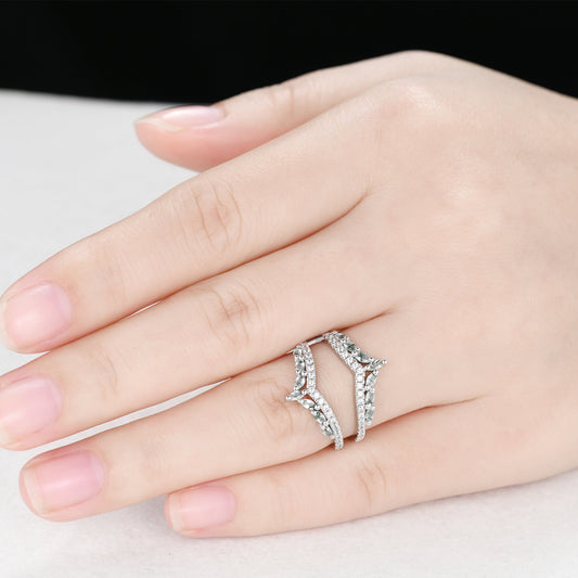 Marquise Moss Agate Chevron Wedding Ring Guard Wedding Band for Women