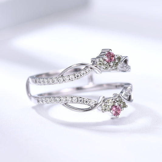 Red Garnet Cluster Wedding Band Pink Sapphire Stacking Ring for Women/Family