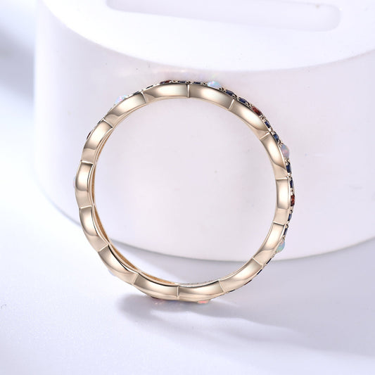 Opal Garnet Sapphire Yellow Gold Wedding Band Multiple Gemstone Full Eternity Ring