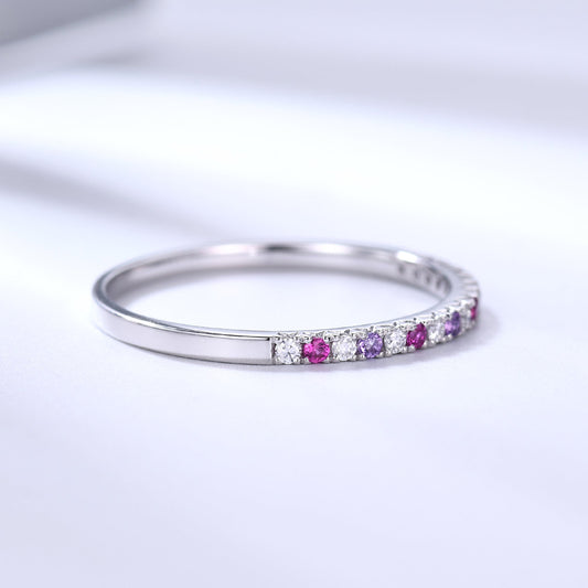 Multi Gemstone Wedding Band Half Eternity Moissanite Amethyst Ruby Stacking Family Ring