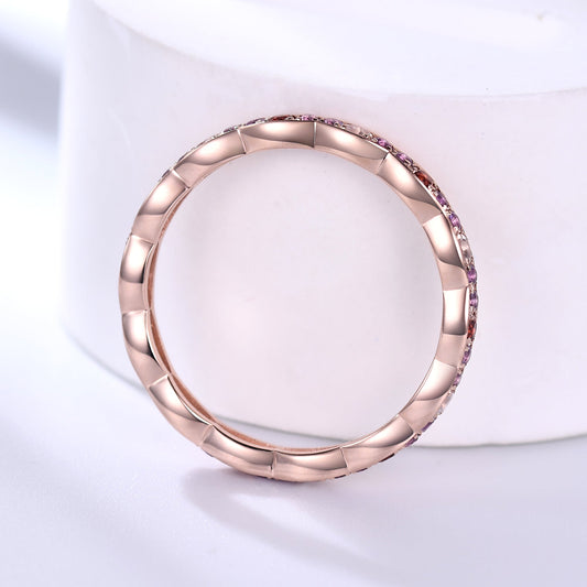 Moonstone Garnet Amethyst Rose Gold Wedding Band Full Eternity Ring
