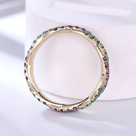 Twisted Emerald Amethyst Yellow Gold Wedding Band Full Eternity Ring For Women