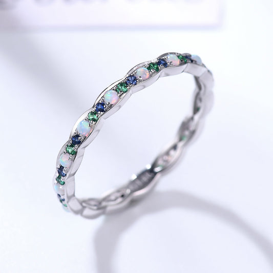Family Birthstone White Gold Wedding Band Opal Emerald Sapphire Full Eternity Ring