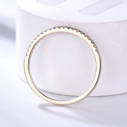 Petite Topaz Peridot Moissanite Yellow Gold Half Eternity Wedding Band Thin Stacking Ring
