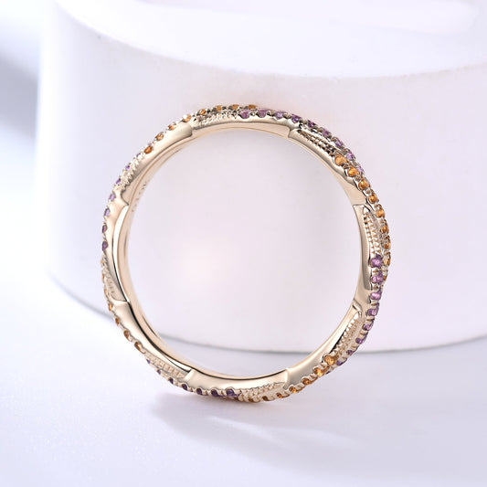 Twisted Amethyst Citrine Yellow Gold Double Wedding Band Full Eternity Ring For Women