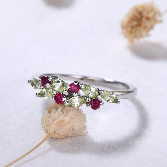 Marquise Peridot Ruby Cluster Wedding Band White Gold Ring Multi-Color Band