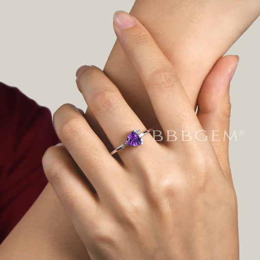 Trilliant Cut Amethyst Engagement Ring White Gold Cluster Moissanite Ring