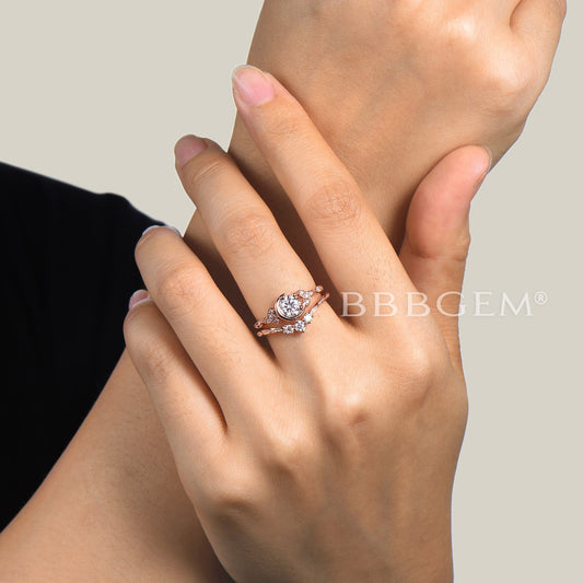 1 Carat Round Lab Grown Diamond Engagement Ring Rose Gold Wedding Set