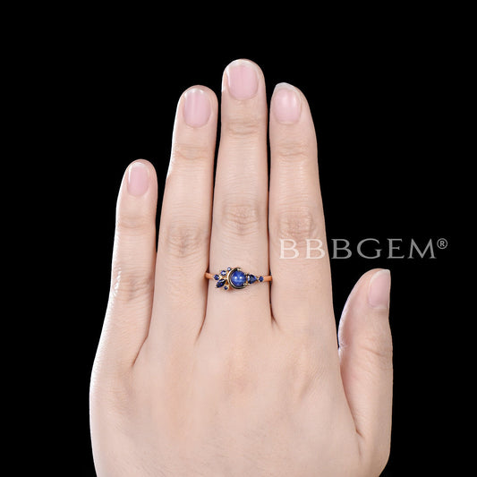 0.5ct Round Star Sapphire Engagement Ring Moon Sapphire Wedding Ring