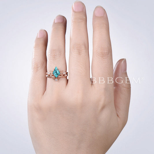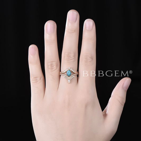 Pear Shaped Turquoise Engagement Ring Rose Gold Diamond Wedding Set