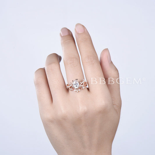 Nature Inspired Pear Moissanite Engagement Ring Leaf Diamond Bridal Set