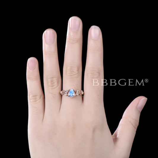 Nature Inspired Pear Moonstone Ring Branch Leaf Opal Engagement Ring