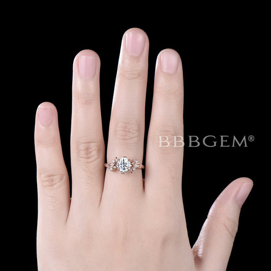 Round Lab Grown Diamond Engagement Ring 14K Rose Gold Leaf Vine Diamond Ring