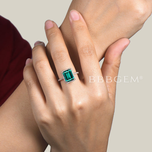 14k Rose Gold Green Emerald Engagement Ring 3CT Emerald Cut Emerald Ring