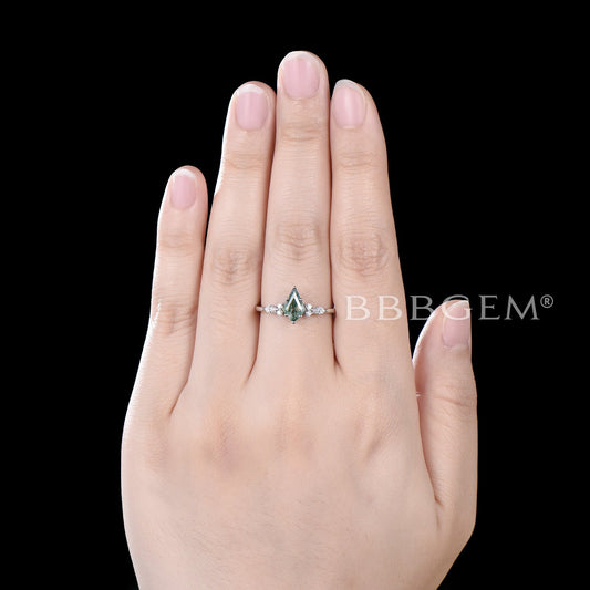 Pear Shaped Moss Agate Engagement Ring Heart Design Green Wedding Ring