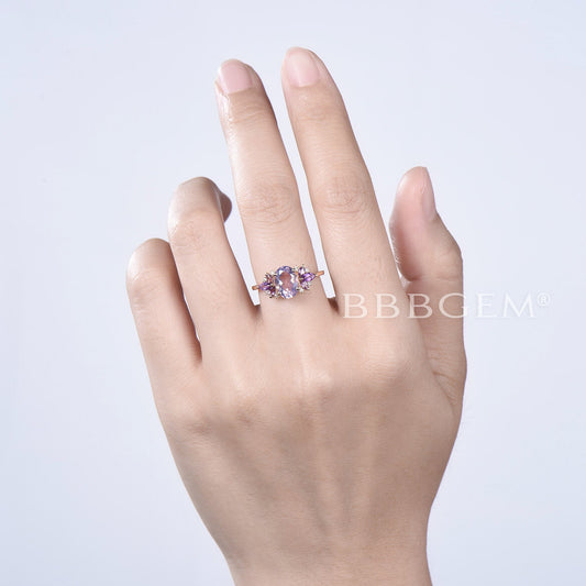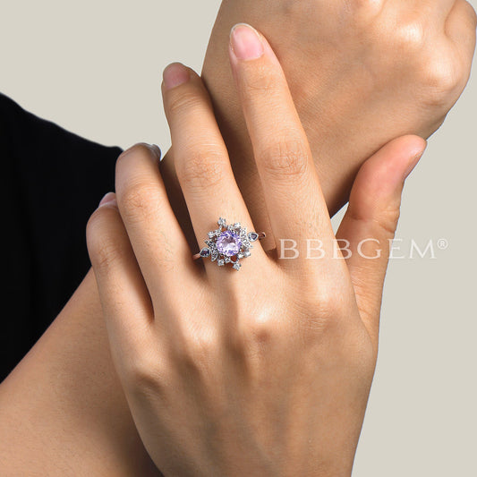 Oval Cut Lavender Amethyst Engagement Ring Cluster Amethyst Ring