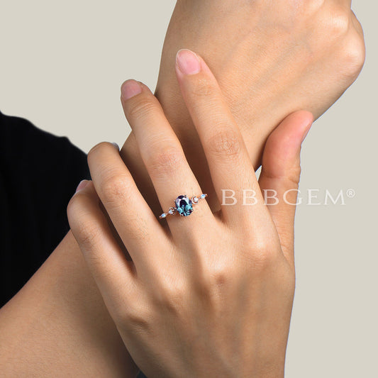 Art Deco Oval Cut Alexandrite Engagement Ring Moonstone Wedding Ring