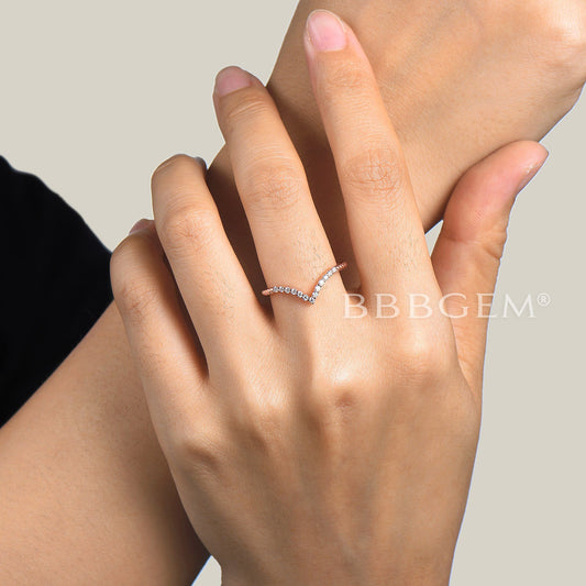 V Curved Diamond Wedding Ring Twisted Half Eternity Matching Band