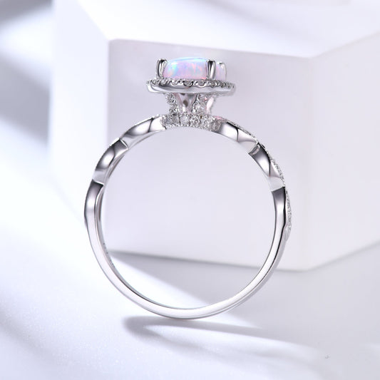 Classic Opal Engagement Ring Diamond Halo Art Deco 7x9mm Cut Oval Gemstone Ring