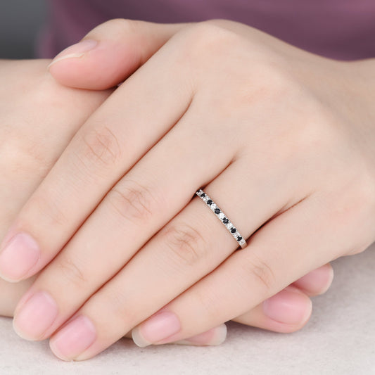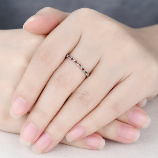 Alexandrite Garnet Wedding Band Half Eternity 1.5mm Stacking Ring for Women