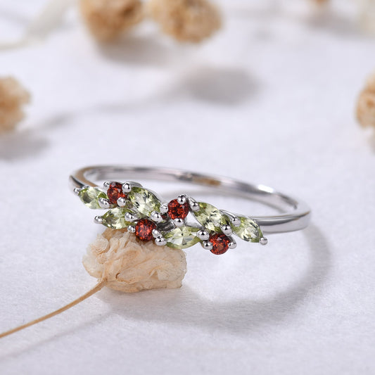 Birthstone Peridot Garnet Cluster Wedding Band White Gold Ring Multi-Color Band
