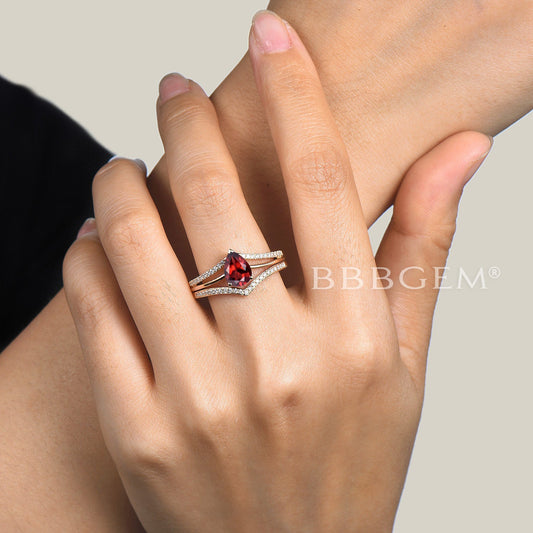 Split Shank Design 1.25CT Pear Cut Natural Garnet Half Eternity Diamond Ring