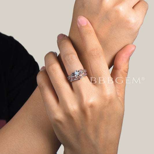 1ct Round Galaxy Blue Sandstone Diamond Split Shank Ring Butterfly Wedding Ring