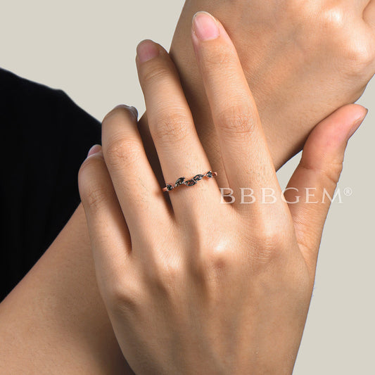 Galaxy Blue Sandstone Wedding Ring Half Eternity 2mm Stacking Band for Women