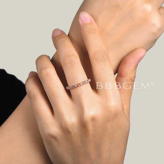 Natural Pink Sapphire Wedding Ring Half Eternity Band 14k Rose Gold Micro Pave 1.5mm