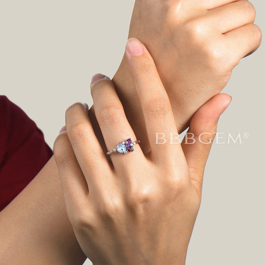 Round Natural Aquamarine Engagement Ring Cluster Amethyst Opal Ring Multi-Stone Ring