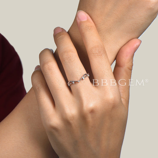 V Curved Diamond Wedding Ring Twisted Vine Matching Nesting Band