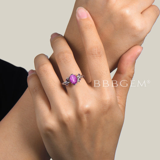Oval Pink Star Sapphire Engagement Ring Twig Leaf Lindy Pink Star Ring
