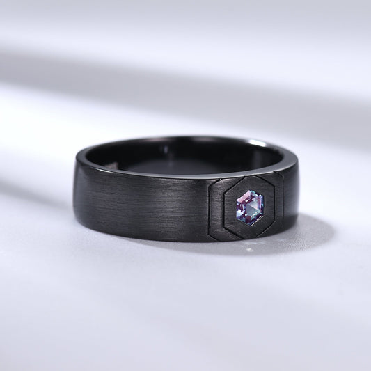 Black Gold Hexagon Cut Alexandrite Mens Wedding Band Anniversary Ring 5-6mm
